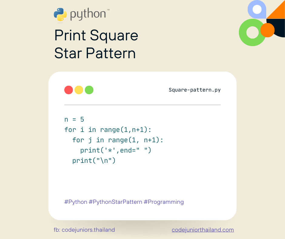 ฝึกโคดดิ้ง สร้างแพทเทิร์นสีเหลี่ยม ด้วยภาษา Python Prin